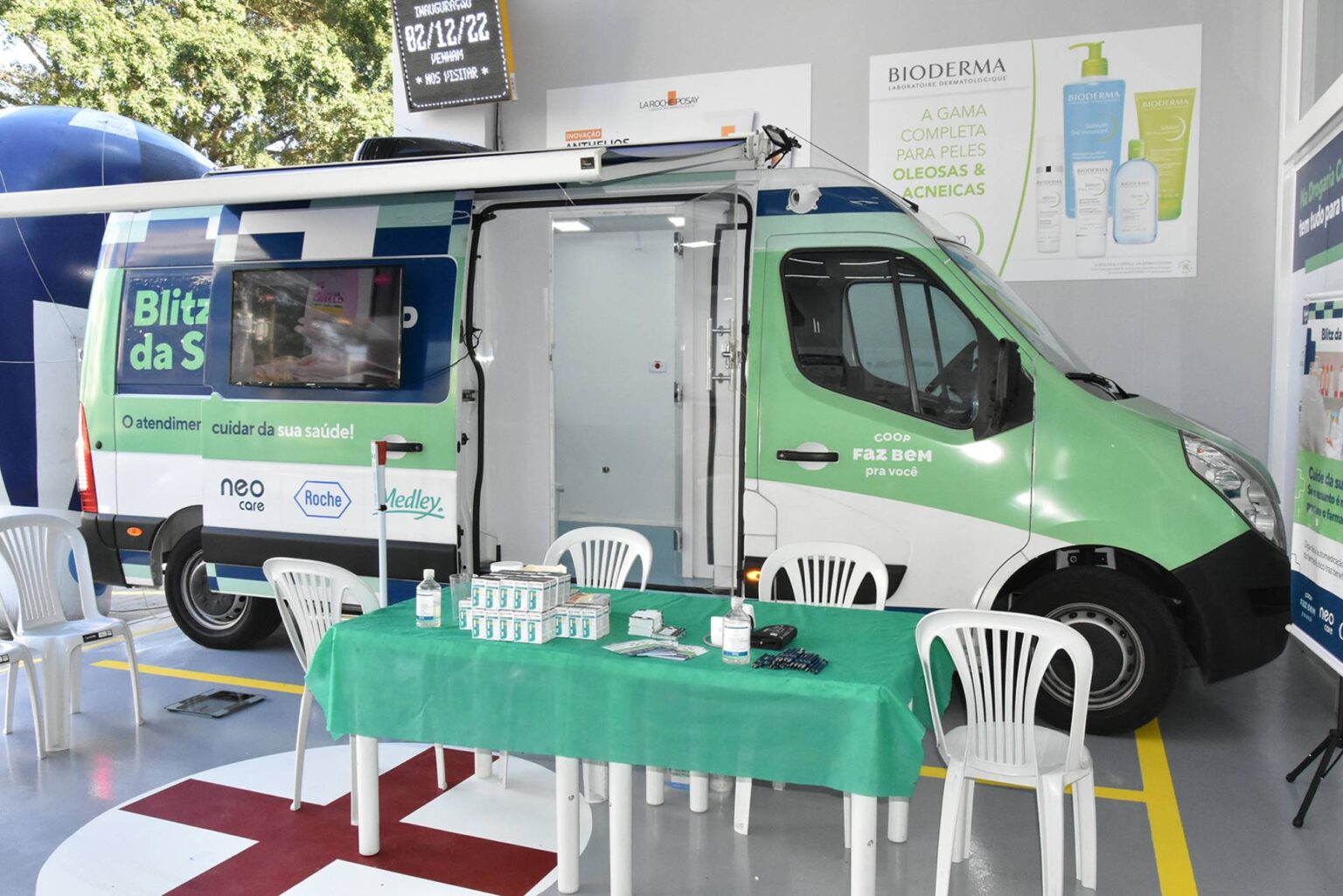 A iniciativa disponibiliza uma van equipada como consultório móvel, com a atuação de farmacêutico e balconista, oferecendo gratuitamente serviços de aferição da pressão arterial, teste de glicemia, cálculo do Índice de Massa Corporal (IMC) e realização de eletrocardiograma. O objetivo é incentivar o cuidado preventivo e facilitar o acesso da população a exames básicos de saúde.